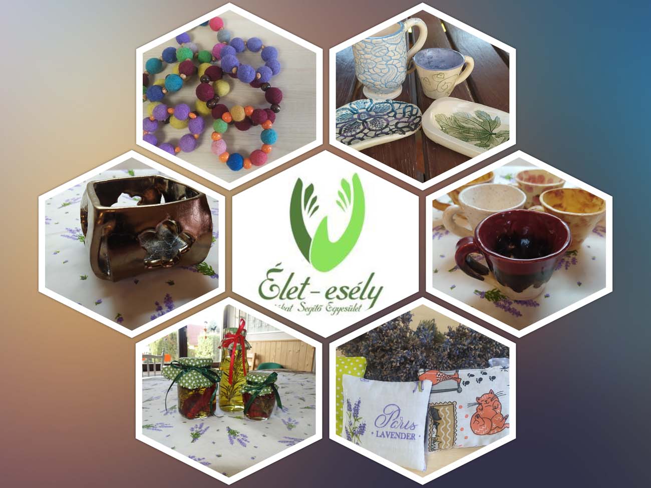 Az ajándéktárgyak készítésénél igyekszünk olyan kézműves termékeket előállítani, amelyek túl azon, hogy „önmagukban” szépek, valamilyen funkcióval is bírnak: hordható ékszerek, csészék, tálak, szatyrok, tokok – csupa olyan dolog, amiket a hétköznapokban bárki használhat. Külön fontos számunkra a környezettudatosság: az alapanyag választásnál elsődleges szempont az újrahasznosítás (PET-palackok, tojástartók, szállításból maradt dobozok stb.), illetve kínálatunkban megtalálhatóak szatyrok, táskák, öko-zsákok, amivel a műanyag-felhasználást igyekszünk csökkenteni.